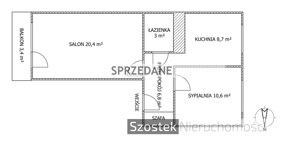 Mieszkanie o powierzchni 49,5 m², znajdujące się na 3 piętrze 4 piętrowego, ocieplonego budynku. Układ pomieszczeń obejmuje salon z wyjściem na balkon, sypialnię, kuchnię, łazienkę oraz przedpokój. Ekspozycja okien: wschód (salon) oraz zachód (kuchnia i sypialnia). Do mieszkania przynależą: piwnica (aż 6,3 m²) oraz balkon (3,4 m²).