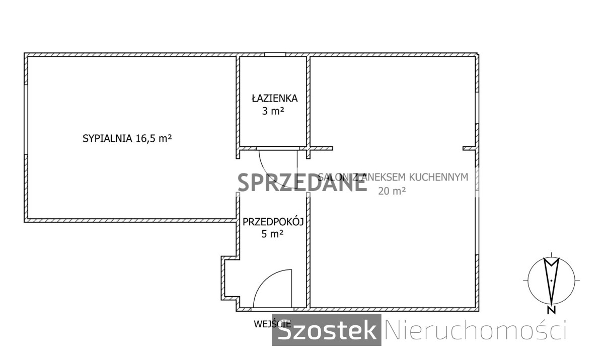 Mieszkanie o powierzchni 44,5 m², znajdujące się na 2 piętrze estetycznego budynku z cegły. Układ pomieszczeń obejmuje salon z aneksem kuchennym (kuchnia posiada własne okno), sypialnię, łazienkę z oknem oraz przedpokój. Ekspozycja okien na zachód (salon z aneksem kuchennym) oraz na wschód (sypialnia). Do mieszkania przynależna jest piwnica.