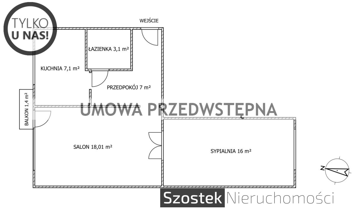 Mieszkanie o powierzchni 51,21 m², znajdujące się na 2 piętrze kameralnego, ocieplonego budynku. Układ pomieszczeń obejmuje salon, sypialnię, osobną kuchnię z oknem, łazienkę oraz przedpokój. Ekspozycja okien na 2 strony świata zapewnia dobre doświetlenie o każdej porze dnia. Do mieszkania przynależna jest piwnica 4,8m² oraz balkon 1,4 m².