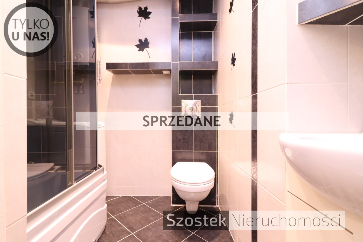 W łazience stałą zabudowa. W kuchni: kuchenka gazowa.