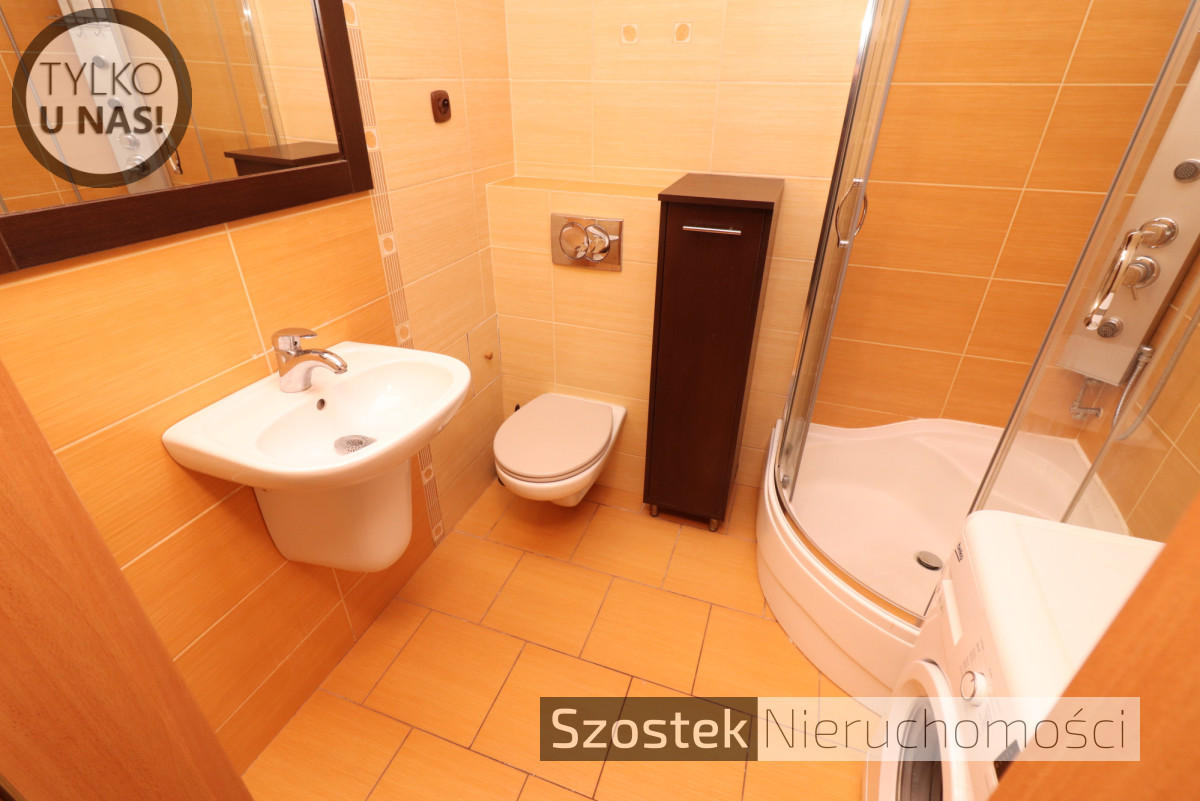 Kuchnia wraz z zabudową meblową, stół, 4 krzesła oraz sprzęt AGD: zmywarka Siemens, płyta indukcyjna i piekarnik Mastercook, lodówka Whirlpool, kuchenka mikrofalowa LG, okap Gorenje. W salonie pozostaje kanapa, szafka TV, Szafka oraz mała szafa/słupek meblowy. Sypialnia wyposażona w kanapę, komodę, biurko i szafę. W przedpokoju dwie szafy w tym jedna wyjątkowo duża oraz szafka. Łazienka wraz ze stałą zabudową oraz pralką Beko.
