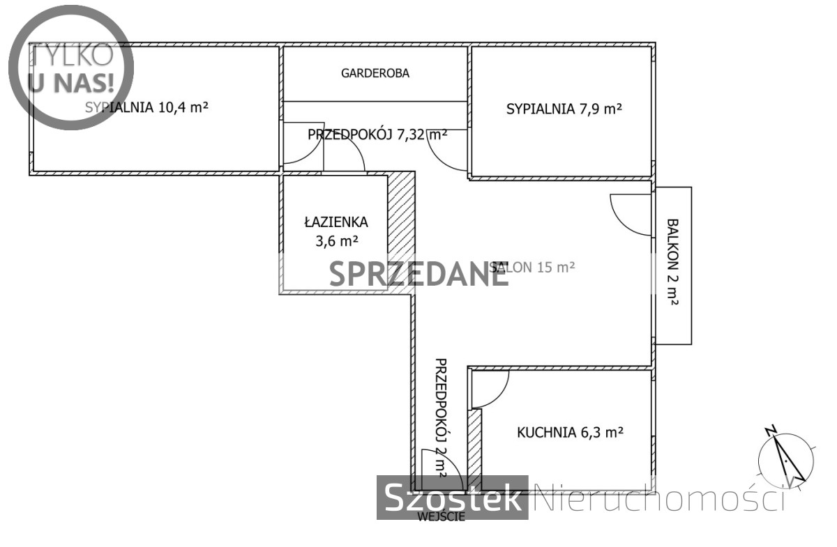 Mieszkanie o powierzchni 52,52 m², zlokalizowane na 6 piętrze, kameralnego budynku. Układ pomieszczeń obejmuje salon, dwie sypialnie, osobną kuchnię z oknem, łazienkę oraz przedpokój z zabudowaną sporą garderobą. Ekspozycja okien na wschód (salon, sypialnia, kuchnia) oraz zachód (sypialnia). Do mieszkania przynależą: balkon (2m²) oraz piwnica (2,5m²).