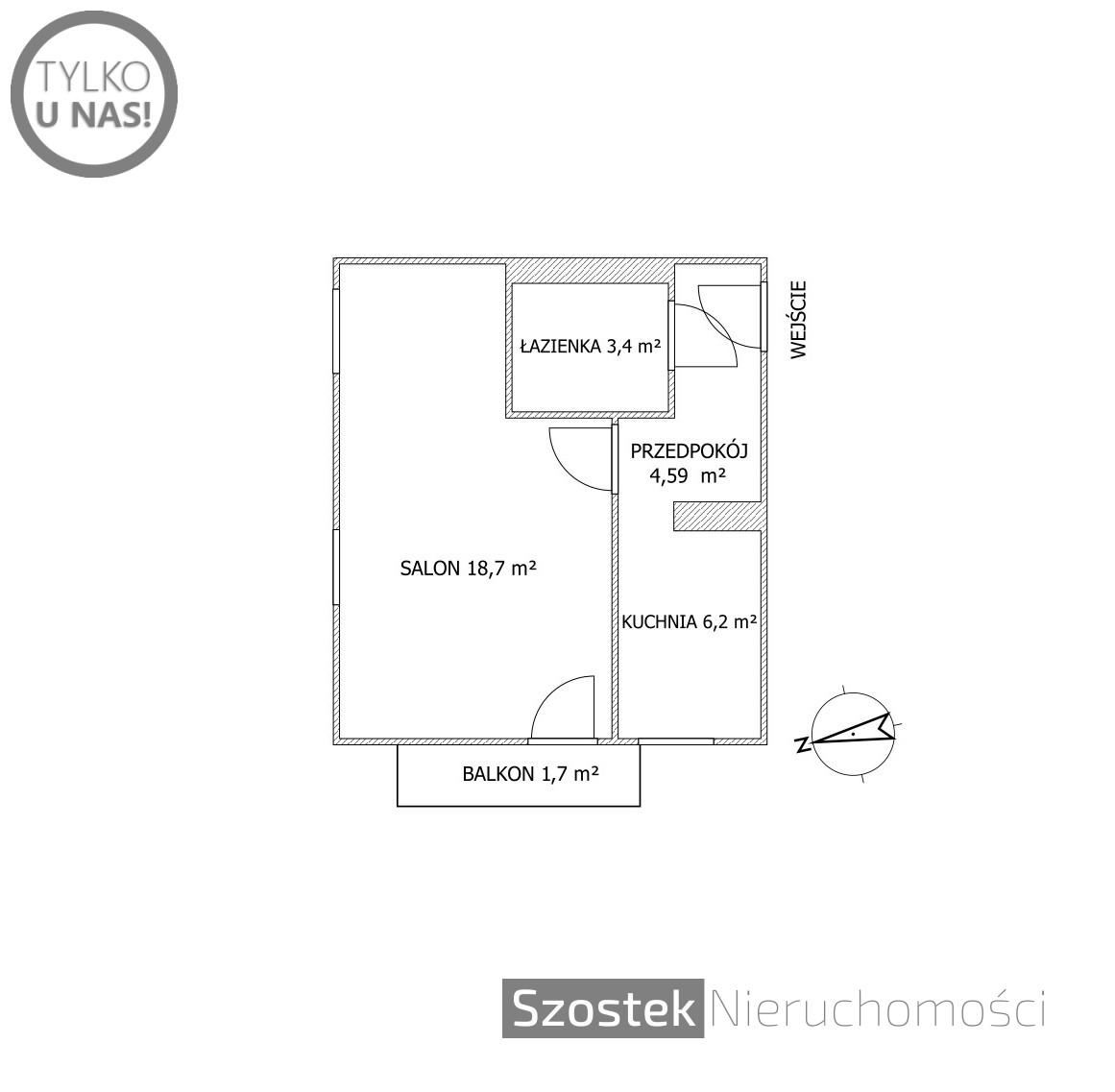 Mieszkanie o powierzchni 32,89 m², zlokalizowane na 7 piętrze, kameralnego budynku. Układ pomieszczeń obejmuje salon, osobną kuchnię z oknem, łazienkę oraz przedpokój. Ekspozycja okien głównie na zachód oraz północ. Do mieszkania przynależą: balkon (1,7 m²) oraz piwnica.
