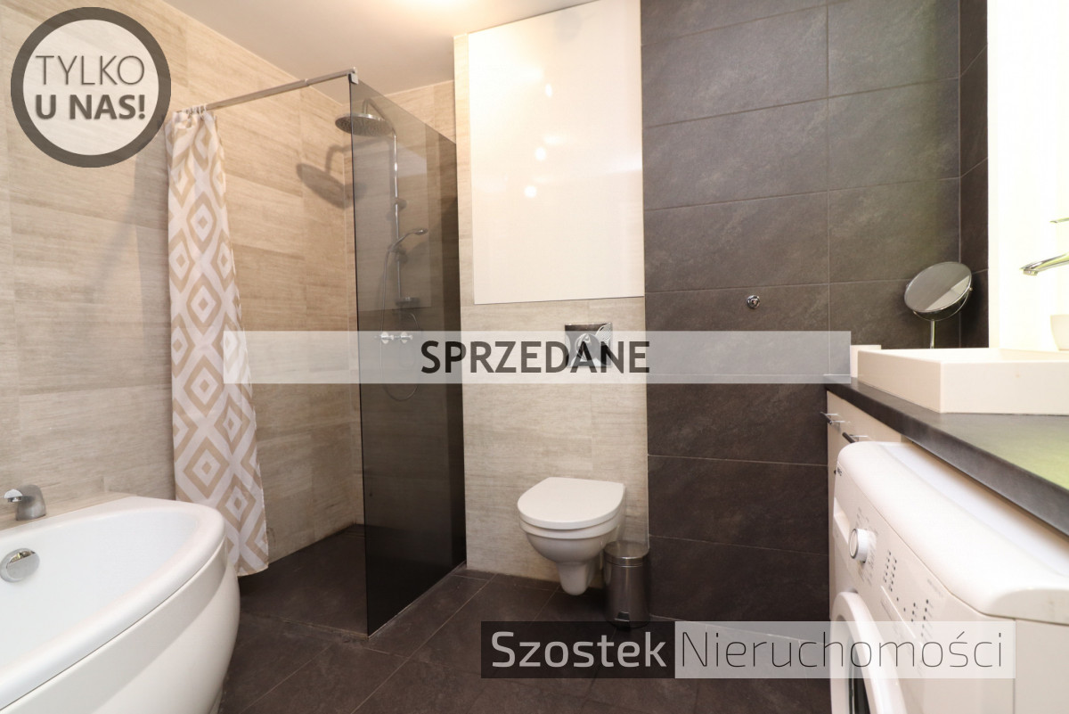 Mieszkanie w pełni wyposażone. Kuchnia w zabudowie z wieloma nowoczesnymi rozwiązaniami m.in. szafka cargo, szafka narożna i wiele innych. Sprzęt AGD: zmywarka Ariston, płyta indukcyjna Whirlpool, lodówka Whirlpool, piekarnik z funkcją mikrofalówki Samsung. W salonie pozostaje kanapa, stół rozkładany, telewizor 4K, 49 cali LG, szafka TV, lampa. W sypialniach pozostają łóżka wraz z materacami natomiast w garderobie zabudowa meblowa. W łazience stała zabudowa oraz pralka Beko. Ponadto drobne sprzęty AGD takie jak odkurzacz czy żelazko.