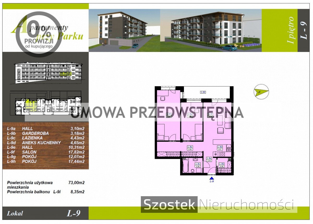 Niniejsze ogłoszenie wraz z planem dotyczy mieszkania nr 9 na pierwszym piętrze w etapie II o powierzchni 73 m2. Lokal sprzedawany w stanie deweloperskim (zdjęcia aranżacji przedstawiają mieszkanie pokazowe nie będące przedmiotem niniejszego ogłoszenia).