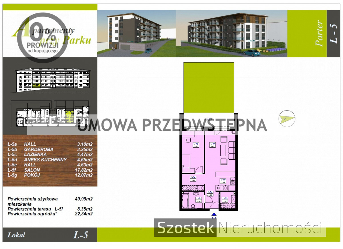 Niniejsze ogłoszenie wraz z planem dotyczy mieszkania nr 5 na parterze w etapie II o powierzchni 49,99 m2 w cenie: 239 952 zł. Lokal sprzedawany w stanie deweloperskim (zdjęcia aranżacji przedstawiają mieszkanie pokazowe nie będące przedmiotem niniejszego ogłoszenia).