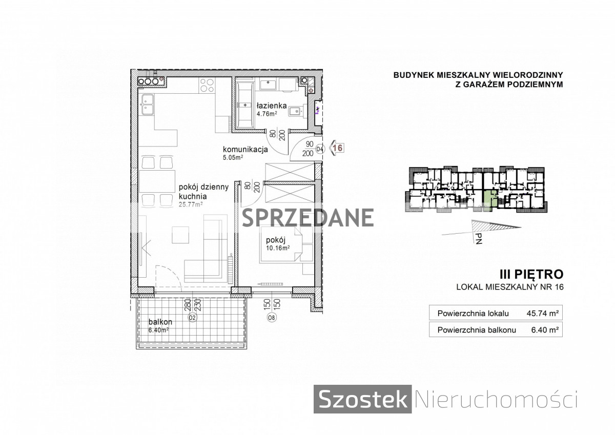 Ogłoszenie dotyczy mieszkania 2 pokojowego z balkonem o pow. 45,65 m2 usytuowanego na 3 piętrze.