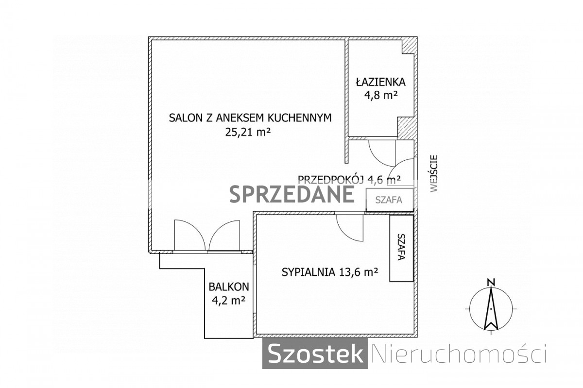 Mieszkanie o powierzchni 48,21 m², zlokalizowane na 1 piętrze, nowoczesnego 4 piętrowego budynku z windą z 2008 roku. Układ pomieszczeń obejmuje z dużym i wygodnym aneksem kuchennym, sypialnię, łazienkę oraz przedpokój. Ekspozycja okien na południe oraz zachód. Przynależny balkon 4,2 m² i piwnica 2,39 m².
