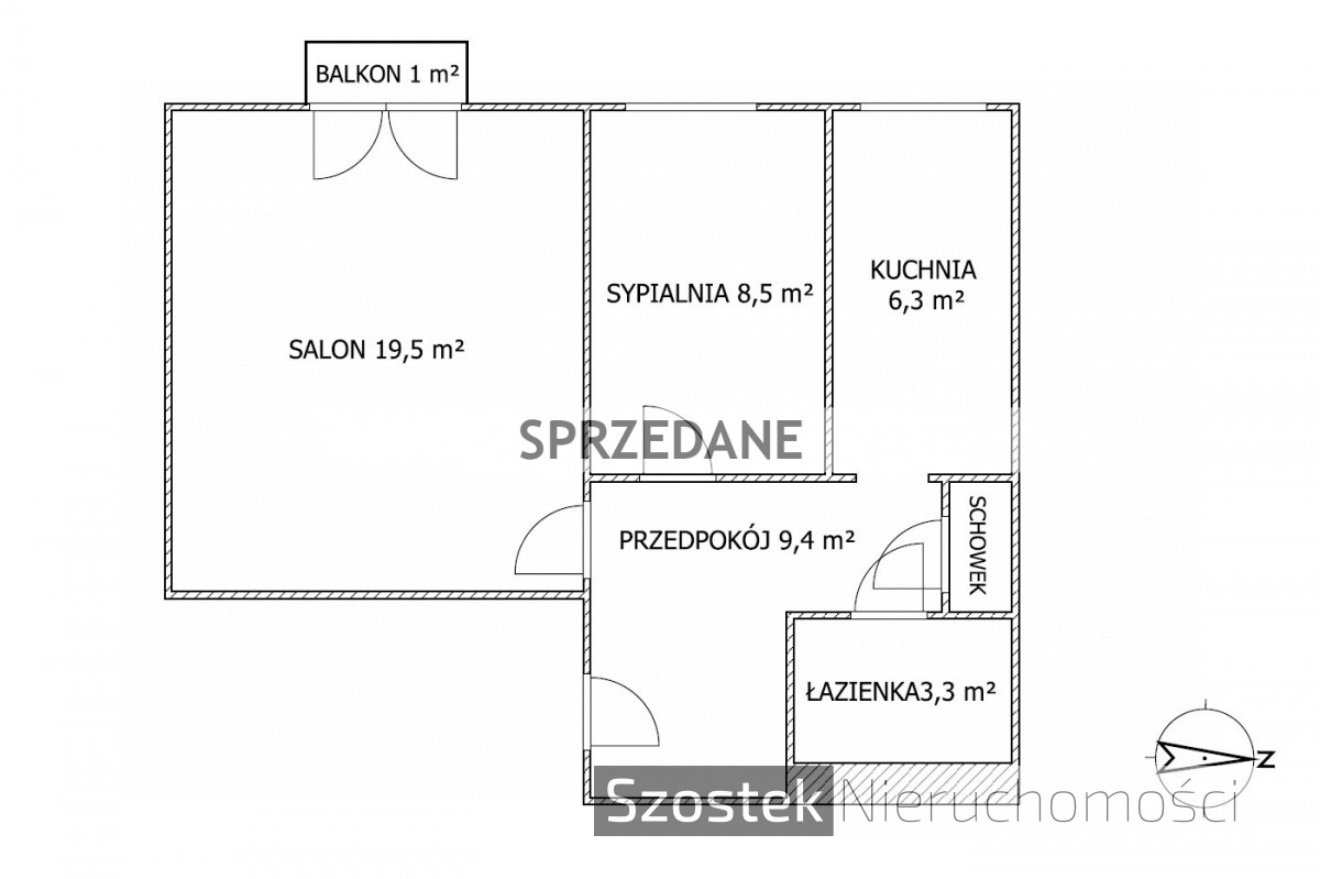 Mieszkanie o powierzchni 47 m², znajdujące się na 4 piętrze 4 piętrowego, estetycznego budynku. Układ pomieszczeń obejmuje duży salon, sypialnię, kuchnię, łazienkę oraz przedpokój ze schowkiem. Ekspozycja okien na zachód. Do mieszkania przynależy piwnica oraz balkon 1m².