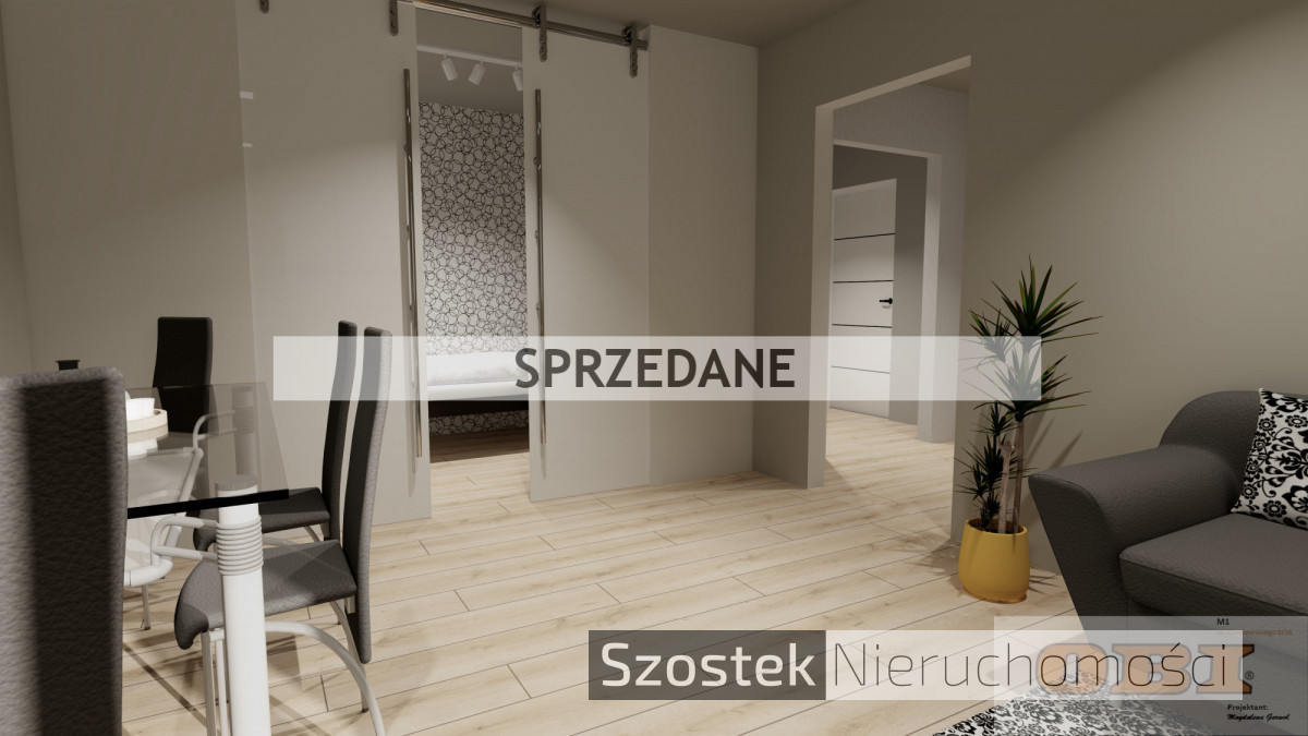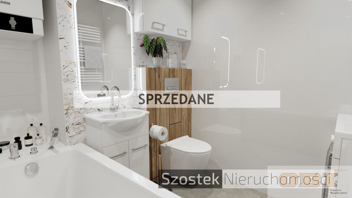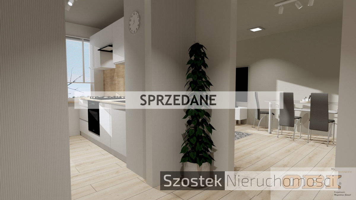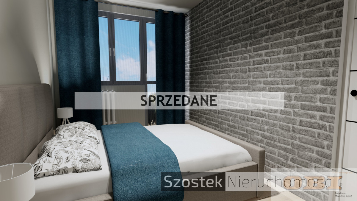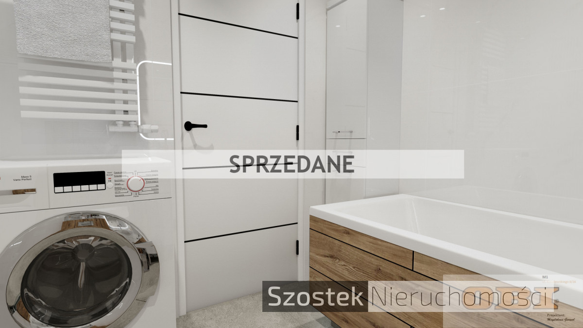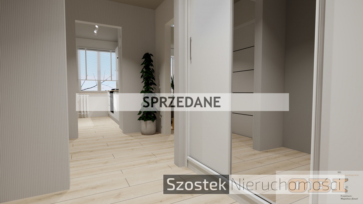 Mieszkanie 2 pokojowe o powierzchni 49,6 m² usytuowane na 4 piętrze, dziesięciopiętrowego budynku z windami. Układ pomieszczeń obejmuje salon z wnęką, sypialnię, kuchnię z oknem, łazienkę i przedpokój. Ekspozycja okien na zachód. Do mieszkania przynależny jest balkon (1,8 m²) oraz piwnica (3,1 m²) .