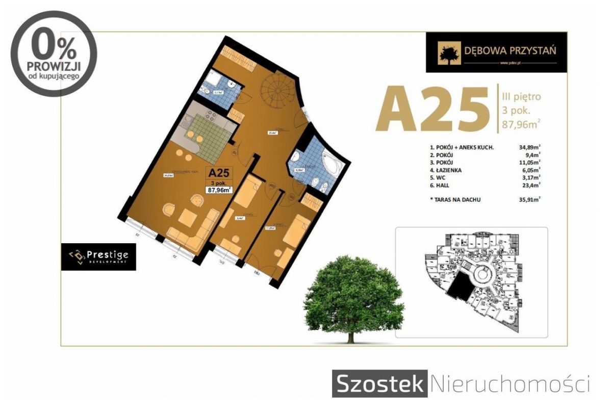 Niniejsze ogłoszenie dotyczy 3-pokojowego mieszkania nr 25 na 3-cim piętrze o powierzchni 87,96 m2 w cenie 395 820 zł (4500zł/m2).