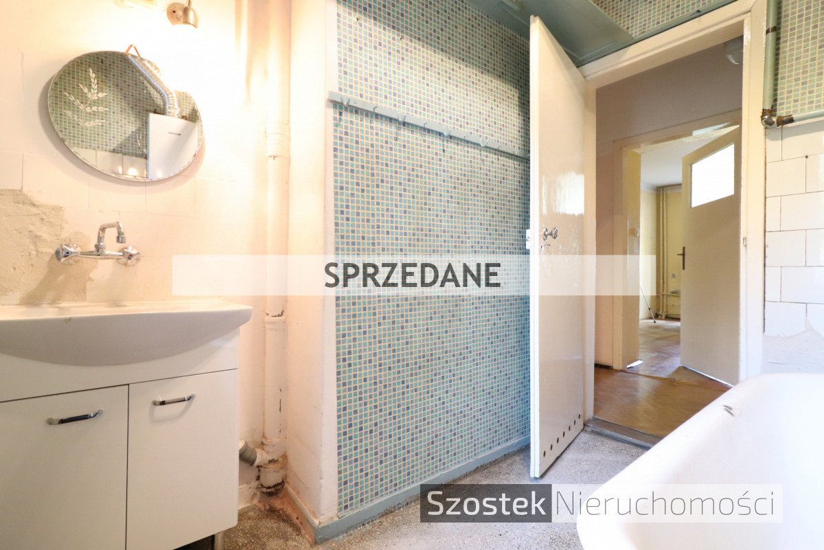 Mieszkanie 2 pokojowe (z możliwością adaptacji na większą liczbę pomieszczeń) o powierzchni 65 m², usytuowane na wysokim parterze 4 piętrowego, ocieplonego budynku. Układ pomieszczeń obejmuje dwa duże pokoje, ogromną kuchnię, którą można w łatwy sposób adaptować na 3 pokój, łazienkę, WC oraz przedpokój (w kuchni jest także spiżarnia z oknem). Ekspozycja okien na: wschód (pokoje) oraz zachód (kuchnia i łazienka). Do mieszkania przynależna jest ogromna piwnica z oknami, aż 14,7m².