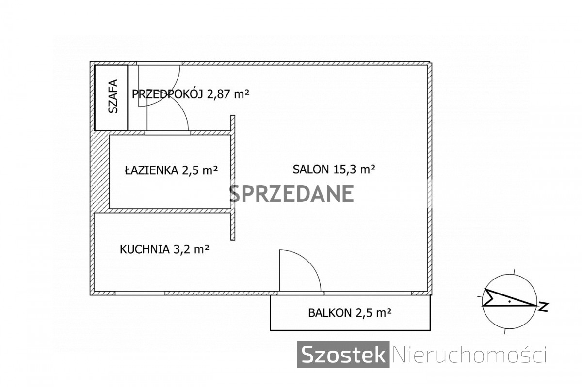 Mieszkanie 1 pokojowe o powierzchni 23,87 m² usytuowane na 4 piętrze, czteropiętrowego budynku. Układ pomieszczeń obejmuje salon, kuchnię z oknem, łazienkę i przedpokój. Ekspozycja okien na wschód (mieszkanie jest bardzo dobrze doświetlone i wygodne w użytkowaniu w lecie. Do mieszkania przynależny jest balkon (2,5 m²) oraz piwnica (1,06 m² ).