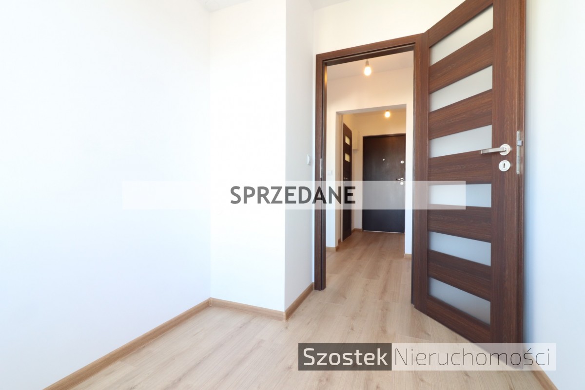 Mieszkanie o powierzchni 31,4m², znajdujące się na 4 piętrze 10 piętrowego, ocieplonego budynku. Układ pomieszczeń obejmuje salon z aneksem kuchennym, mały pokój, łazienkę oraz przedpokój. Ekspozycja okien na zachód. Do mieszkania przynależna jest piwnica.