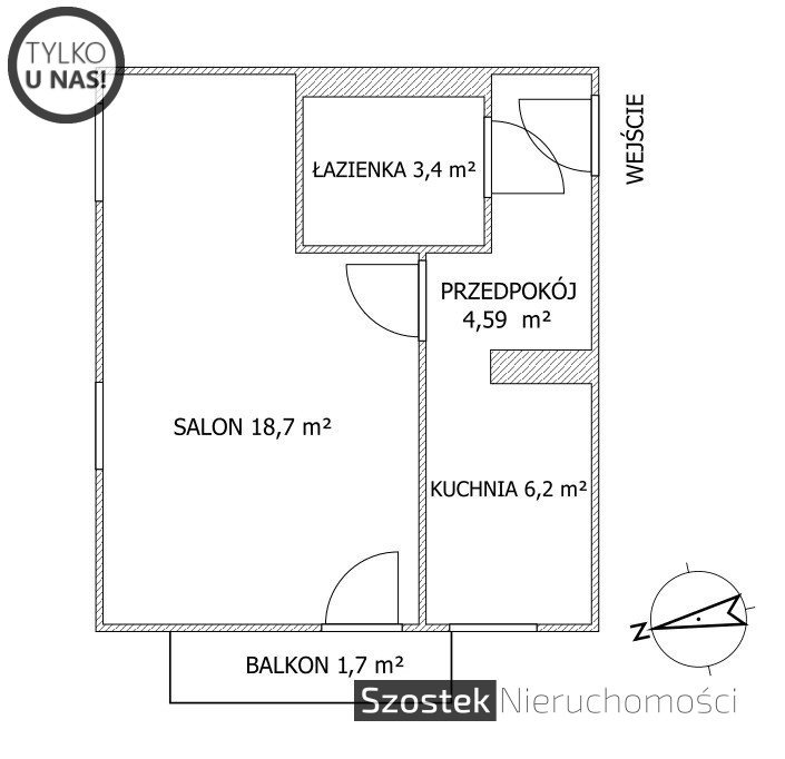 Mieszkanie o powierzchni 32,89 m², zlokalizowane na 7 piętrze, kameralnego budynku. Układ pomieszczeń obejmuje salon, osobną kuchnię z oknem, łazienkę oraz przedpokój. Ekspozycja okien głównie na zachód oraz północ. Do mieszkania przynależą: balkon (1,7 m²) oraz piwnica.