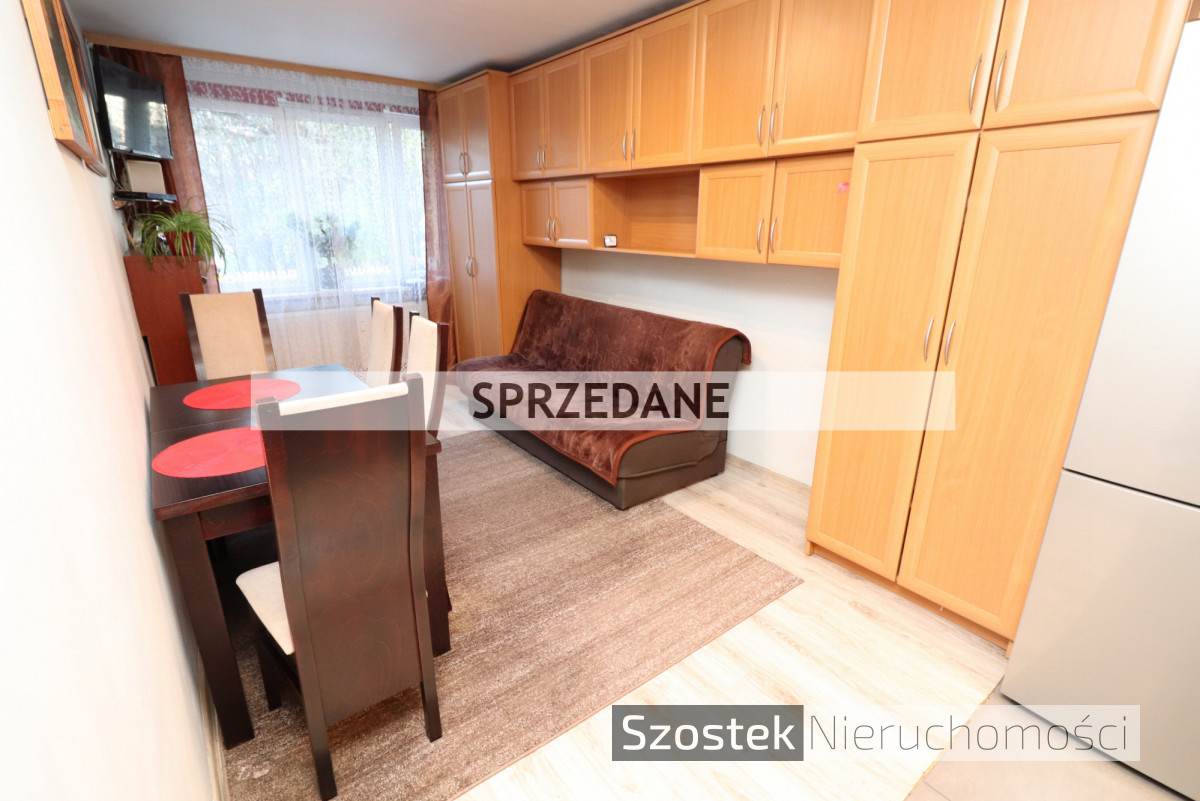 Meble kuchenne w zabudowie, zmywarka, okap, zlew, kuchenka gazowa z piekarnikiem elektrycznym. W przedpokoju: meble w zabudowie oraz szafa we wnęce. Salon wyposażony w meblościankę, komodę oraz kanapę z funkcją spania. W sypialni pozostaje narożna szafa.