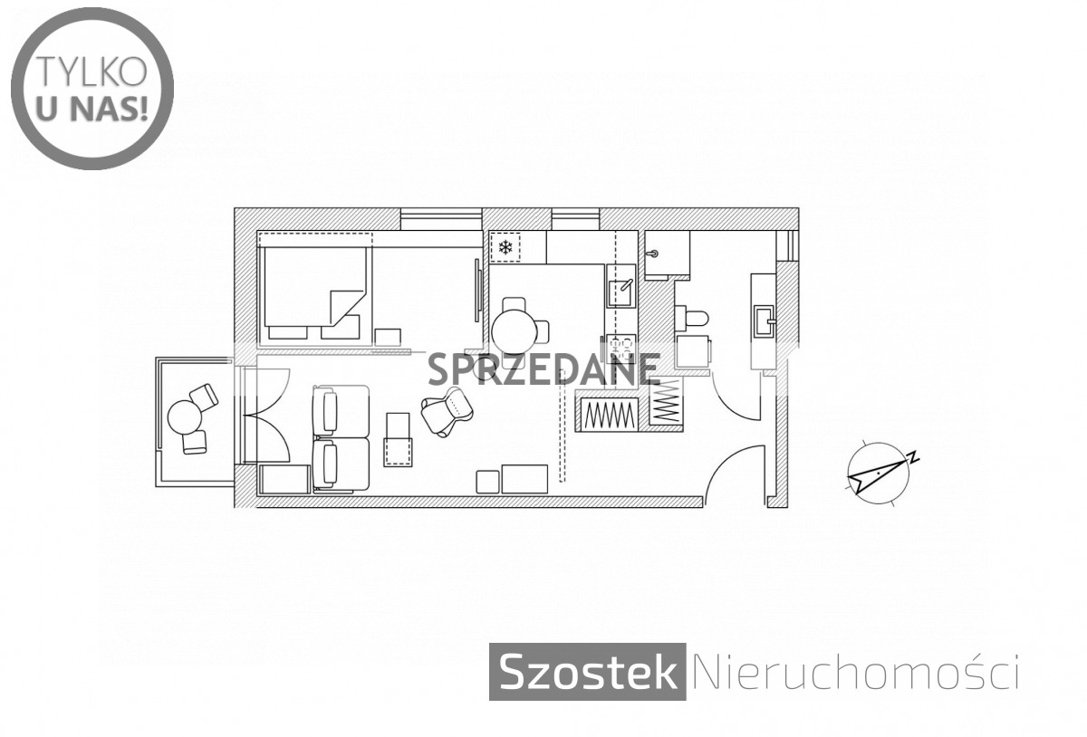 Mieszkanie o powierzchni 42,4 m², zlokalizowane na 2 piętrze, kameralnego, 3 piętrowego budynku z 2011 roku. Układ pomieszczeń obejmuje salon, sypialnię, otwartą kuchnię z oknem, łazienkę z oknem oraz przedpokój. Ekspozycja okien na południowy zachód (salon) oraz północny zachód (sypialnia i kuchnia).